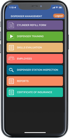 Not just training — this is a full dispenser management system covering inspections, employee sign-up, insurance verification, failed cylinder forms, and compliance tracking all in one place.